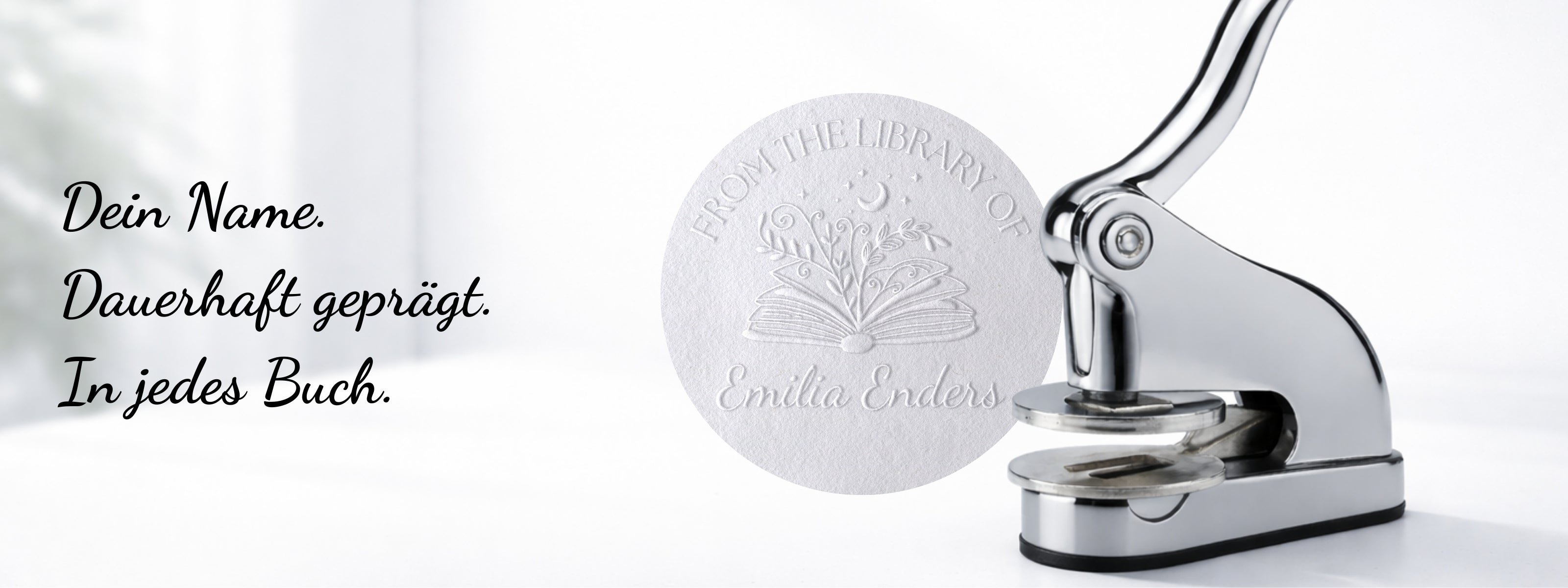 Just Refine fertigt hochwertige Prägestempel (Prägezangen) mit Name, Initialen oder Logo. Ideal als Ex Libris Buchprägestempel, für Briefpapier,Visitenkarten und Verpackungen. Die Prägung wirkt edel, ist dauerhaft und kommt ohne Tinte aus.